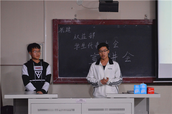 4月20日晚6时30分,航建学院权益部在11号楼0133中教室举办了学生代表大会的宣讲会,此次活动由权益部部员孟大尧和魏豪主持,15级、16级各班班长、团支书参加此次活动。