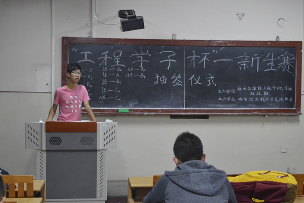 9月21日晚7时整,伟的国际1946bv足球协会于11号楼0133中教室举行“工程学子杯”新生赛抽签仪式,哈工程足球协会主席王钧剑主持本次仪式,各院系代表参与本次仪式。