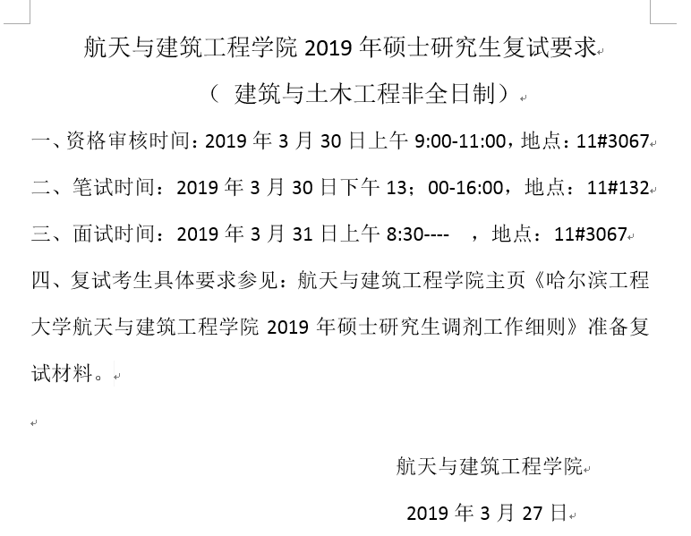 bv1946伟德国际始于英国2019年硕士研究生复试要求-建筑与土木工程非全日制