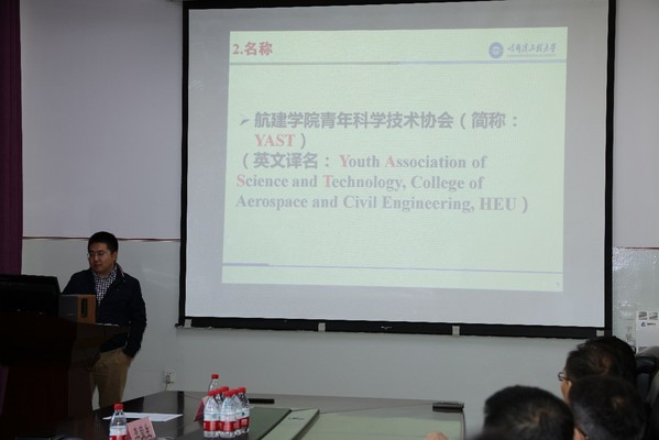 学院青科协会长宋智广介绍了青科协的具体情况和年度工作计划。张阿漫、宋智广教授分别做了题为“水下爆炸流固耦合冲击动力学”和“结构模态局域化机理及其在振动控制与利用中的应用”的学术报告,学院全体青年教师参加了报告会。
