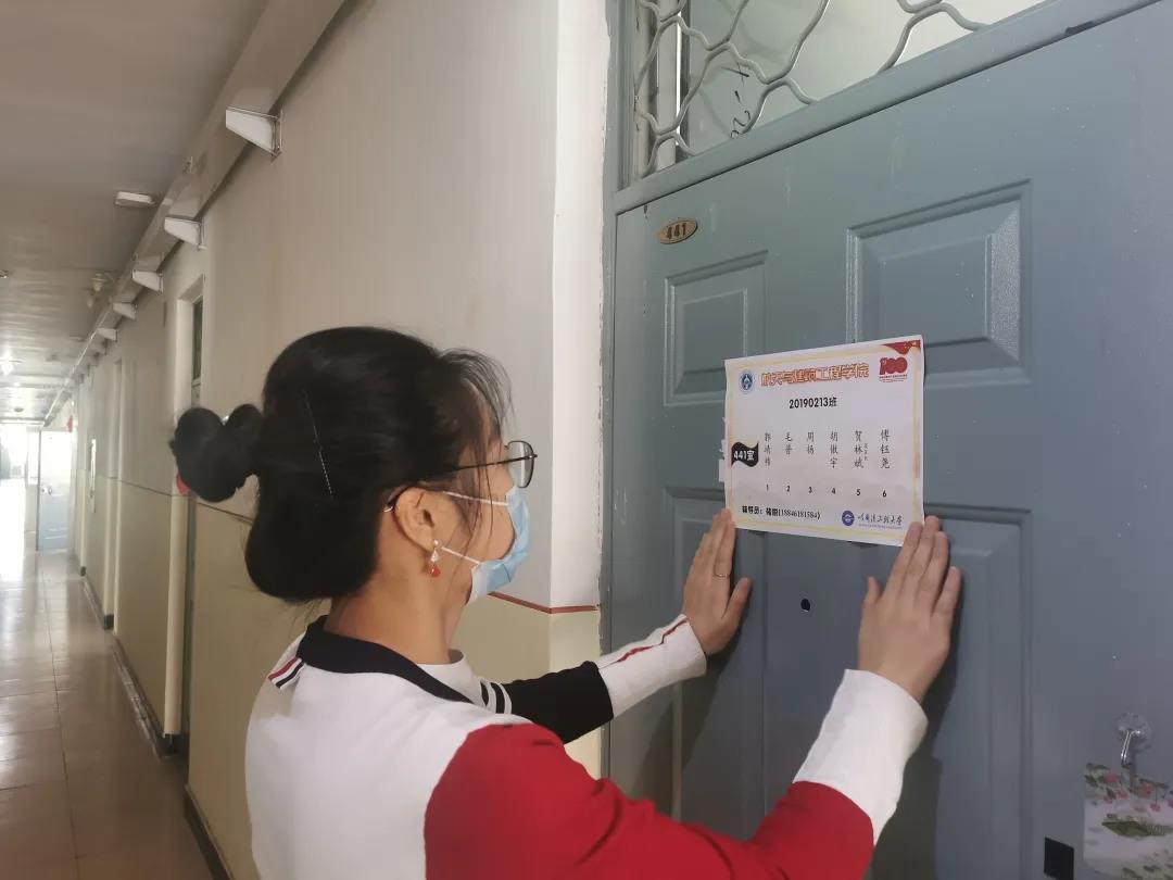 为保证学生返校后能有一个良好的居住环境,以崭新的面貌迎接新学期的到来,假期中,辅导员们定期为每个寝室开窗通风,同时为每个寝室更换了新门牌,营造新学期的新氛围。