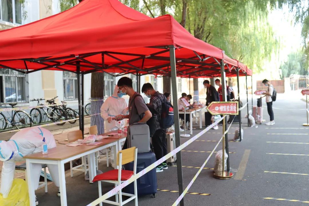 返校学生雷锦潮:窗外还泛着点点的夕阳的余晖,我已经平安地来到了学校,心中充斥着轻松。从学校通知那时起,返校整个过程便处处透露着严格和谨慎,学校为了能让大家顺利回到校园,在各个方面都付出了很大的努力。秋天的校园仍旧光彩宜人,在路途中积攒的紧张气息也在进到校园的一刻统统释放。一条信息登记、核酸检测的通道直通公寓,将防疫贯彻到底。回到熟悉的校园,见到熟悉的辅导员,看到熟悉的同学,想来这一切都是值得的。