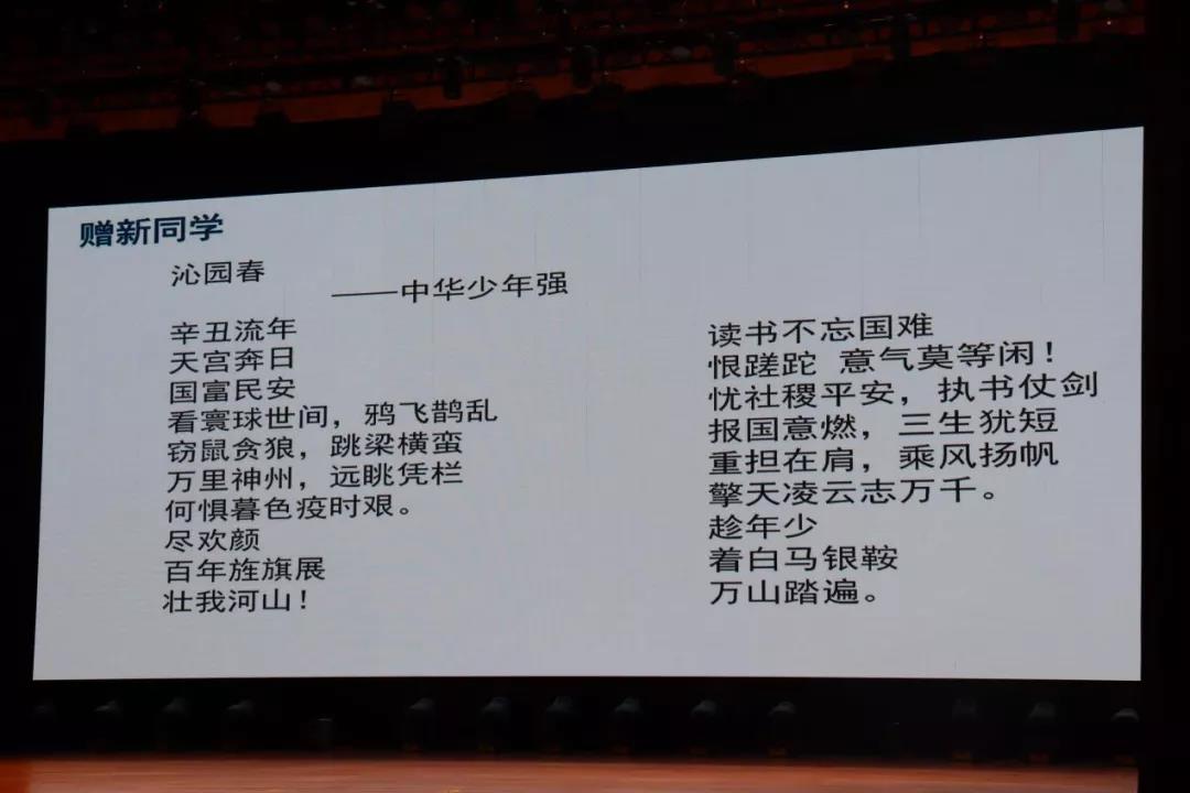贺老师向同学们特意举出哈工程在科创上做出的重大成就,以鼓励同学们不懈奋斗,并将自己创作的一首词送给了同学们。