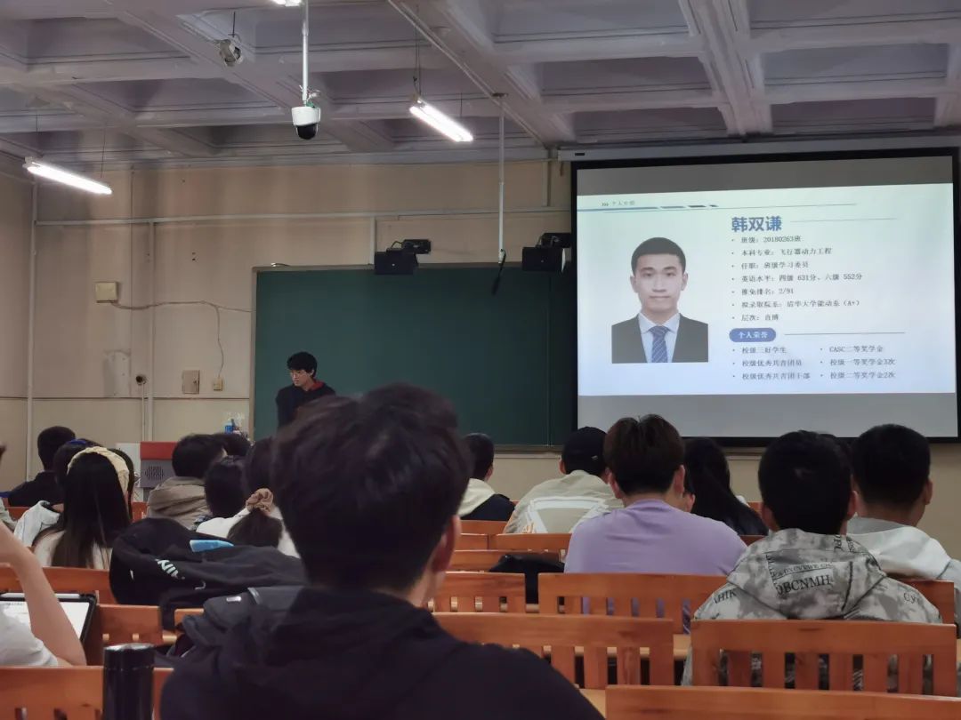 为更好帮助2019级本科生了解以往研究生推免政策、认清考研和就业形势,有针对性地制定备考复习计划,428-510日,航建学院举办2019级本科生就业升学分享会。学院党委副书记张德伟、学工办主任梁艳艳及10余名2018级优秀本科生代表受邀参加会议,他们先后为20194个专业、9个班级、329名在校学生进行“对标差距、找准定位、一战成硕”为主题的就业升学系列分享会。会议由2019级本科生辅导员褚悦主持。