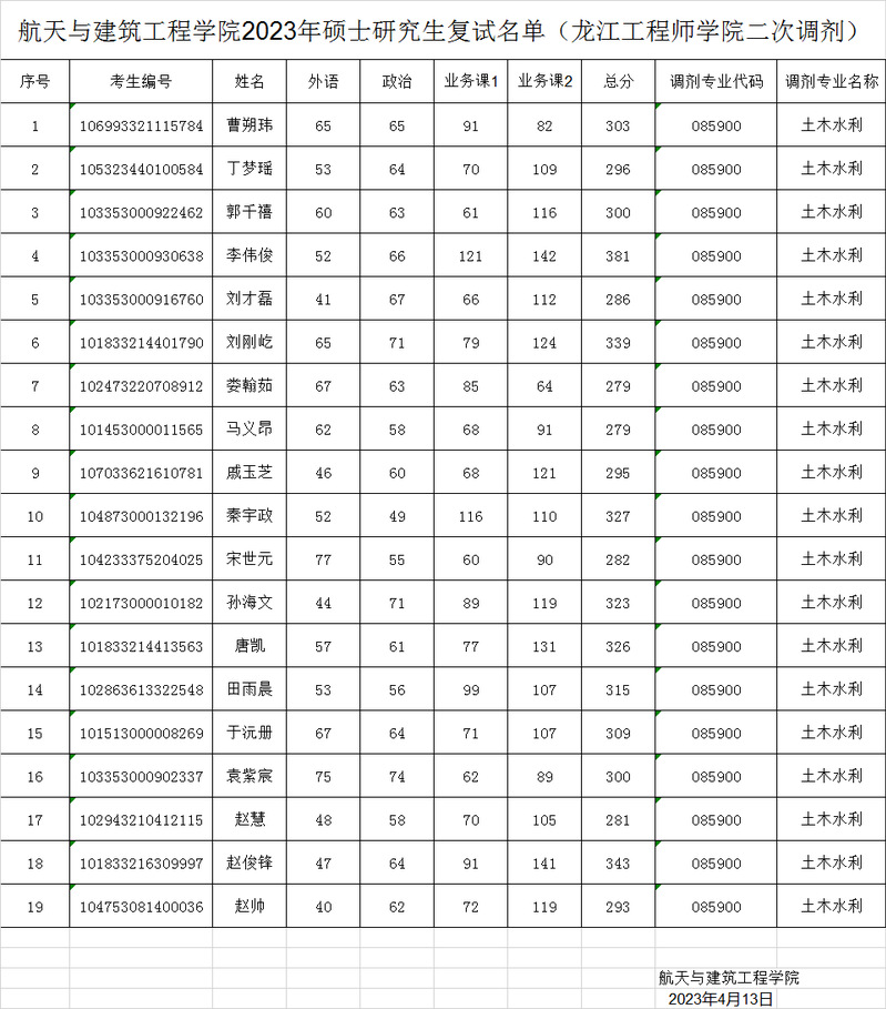bv1946伟德国际始于英国2023年硕士研究生复试名单(龙江工程师学院二次调剂)