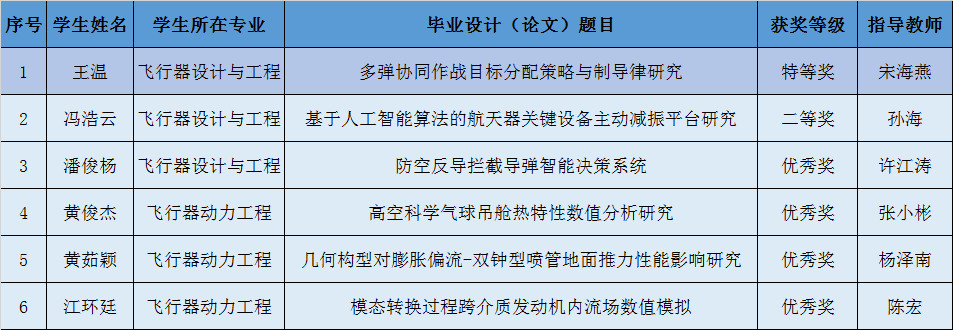我院派出飞行器设计与工程、飞行器动力工程2个专业,6位选手参赛,经过激烈角逐,我院获得特等奖1项,二等奖1项、优秀奖4项,获奖等级实现了历史性突破。