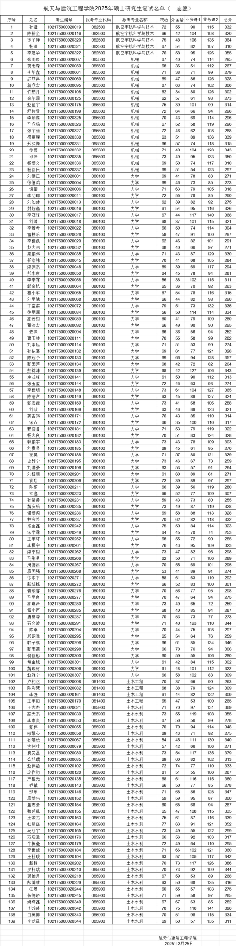 bv1946伟德国际始于英国2025年硕士研究生复试名单(一志愿)