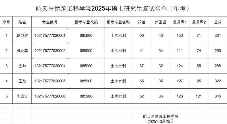 bv1946伟德国际始于英国2025年硕士研究生复试名单(单考)
